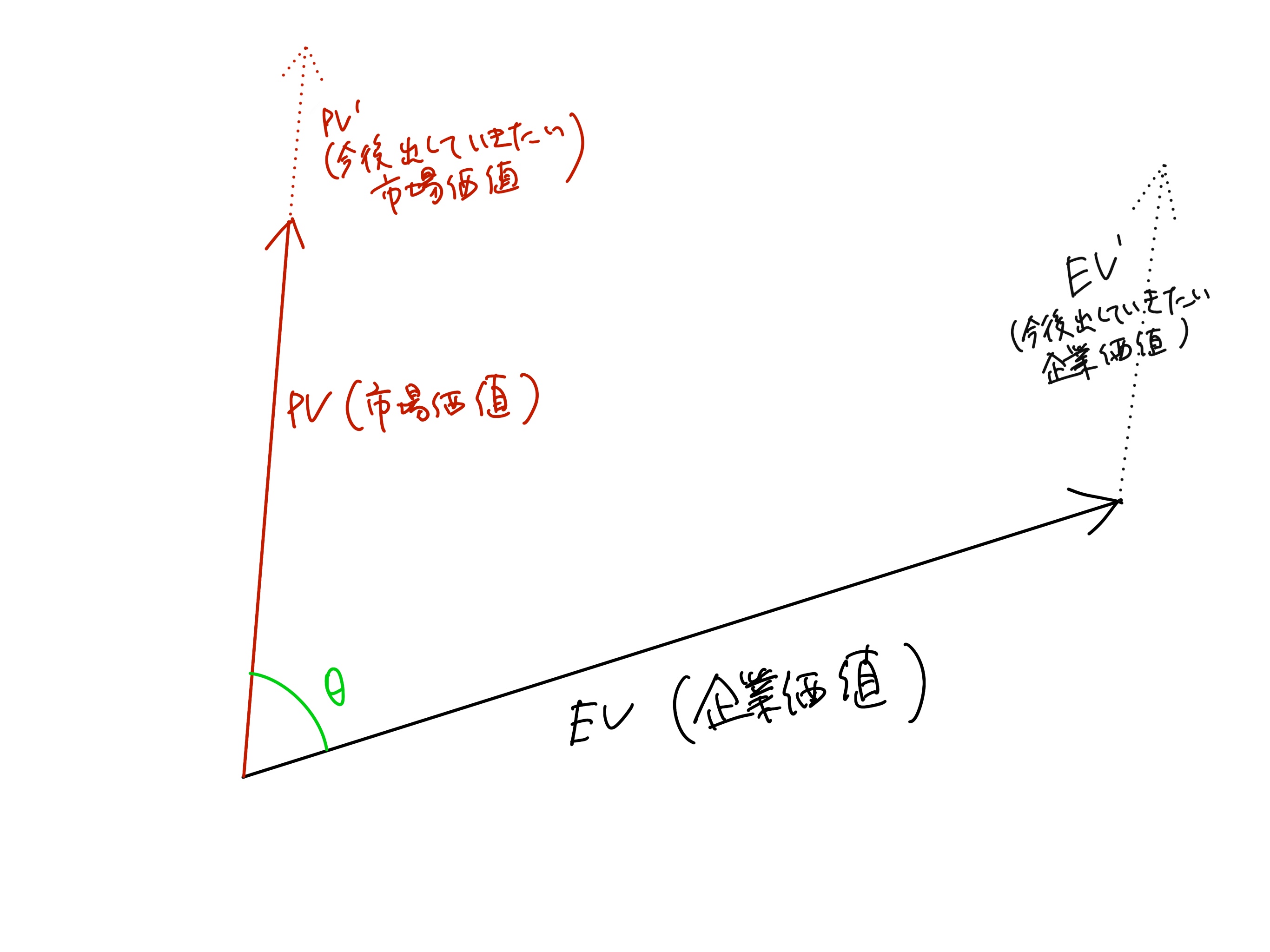 まず、市場価値や企業価値は、それがそもそも存在しない0の状態から、どのような価値をどのような方面に発揮できるかという意味でベクトルとして表現することができます。